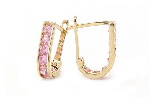 Arany fülbevaló franciakapcsos rózsaszín kővel