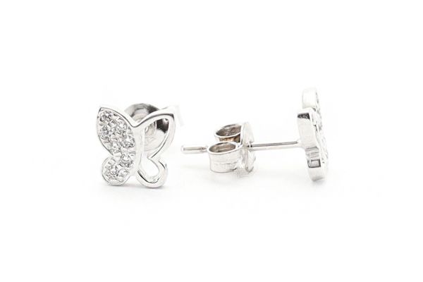 Fehér arany fülbevaló stekkeres pillangó áttört köves
