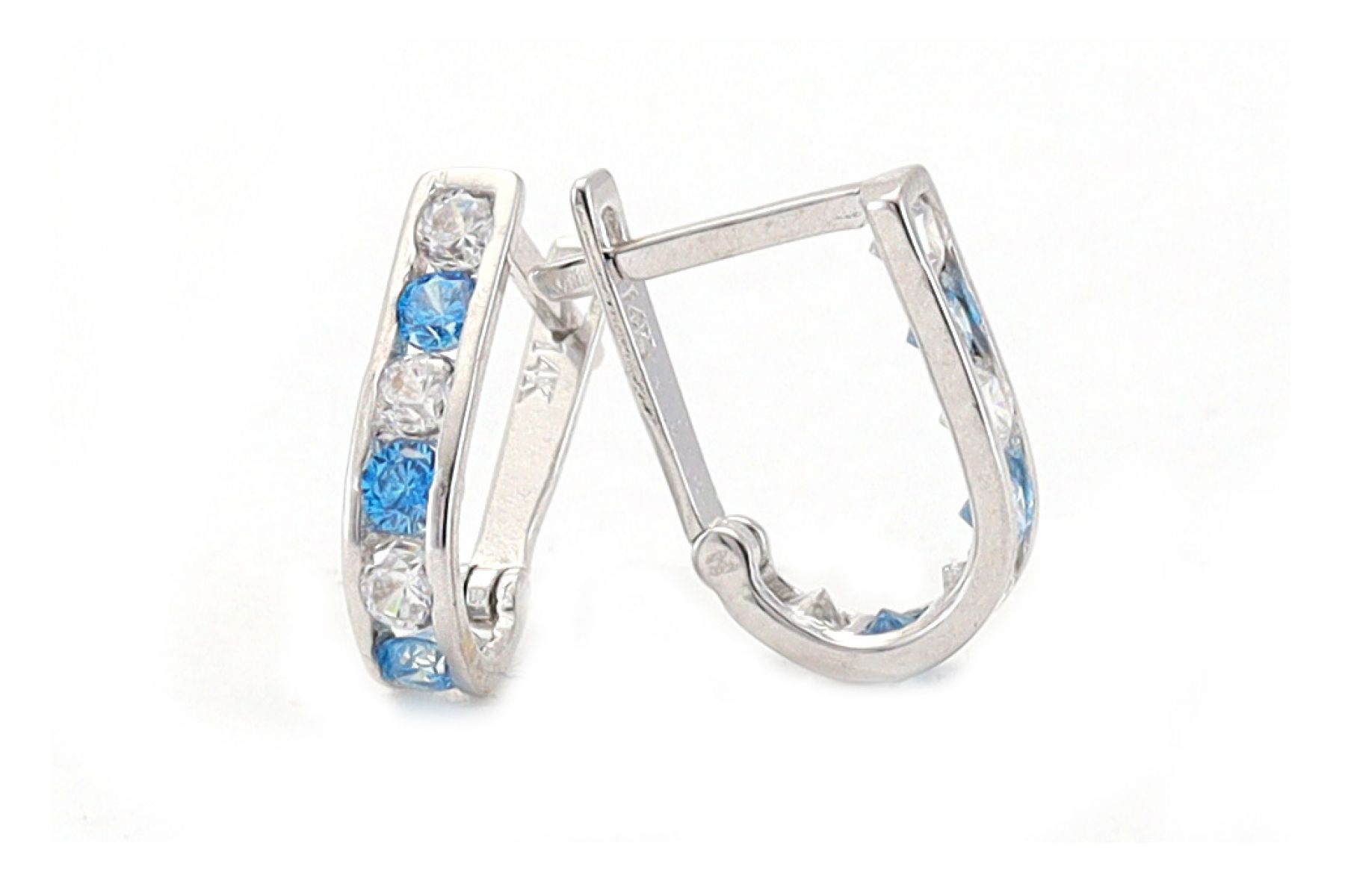 Fehérarany fülbevaló franciakapcsos világoskék-fehér kővel