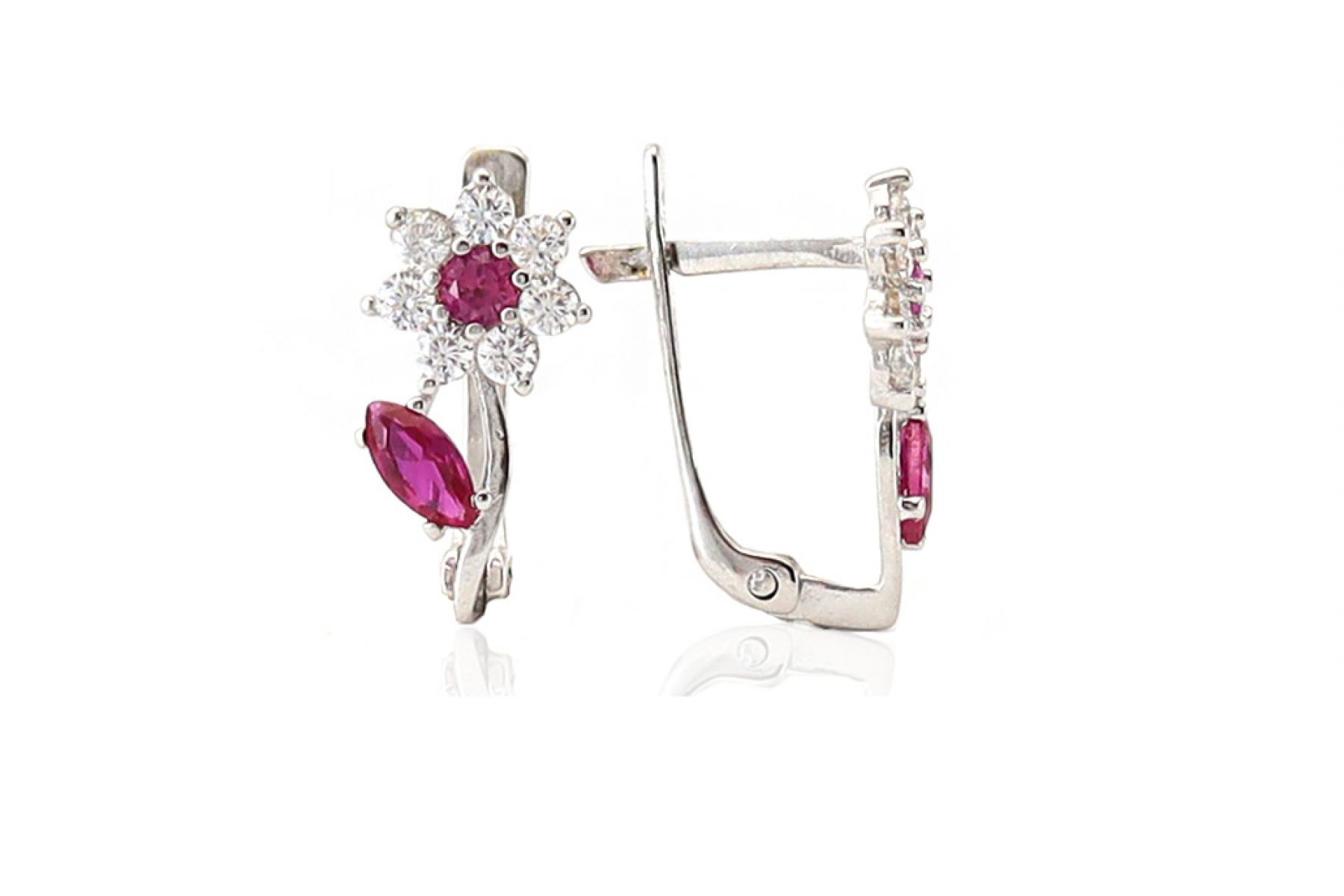 Miért imádják a vásárlók ezt a(z) Magenta és fehér köves, virágmintás fehérarany baba fülbevaló?