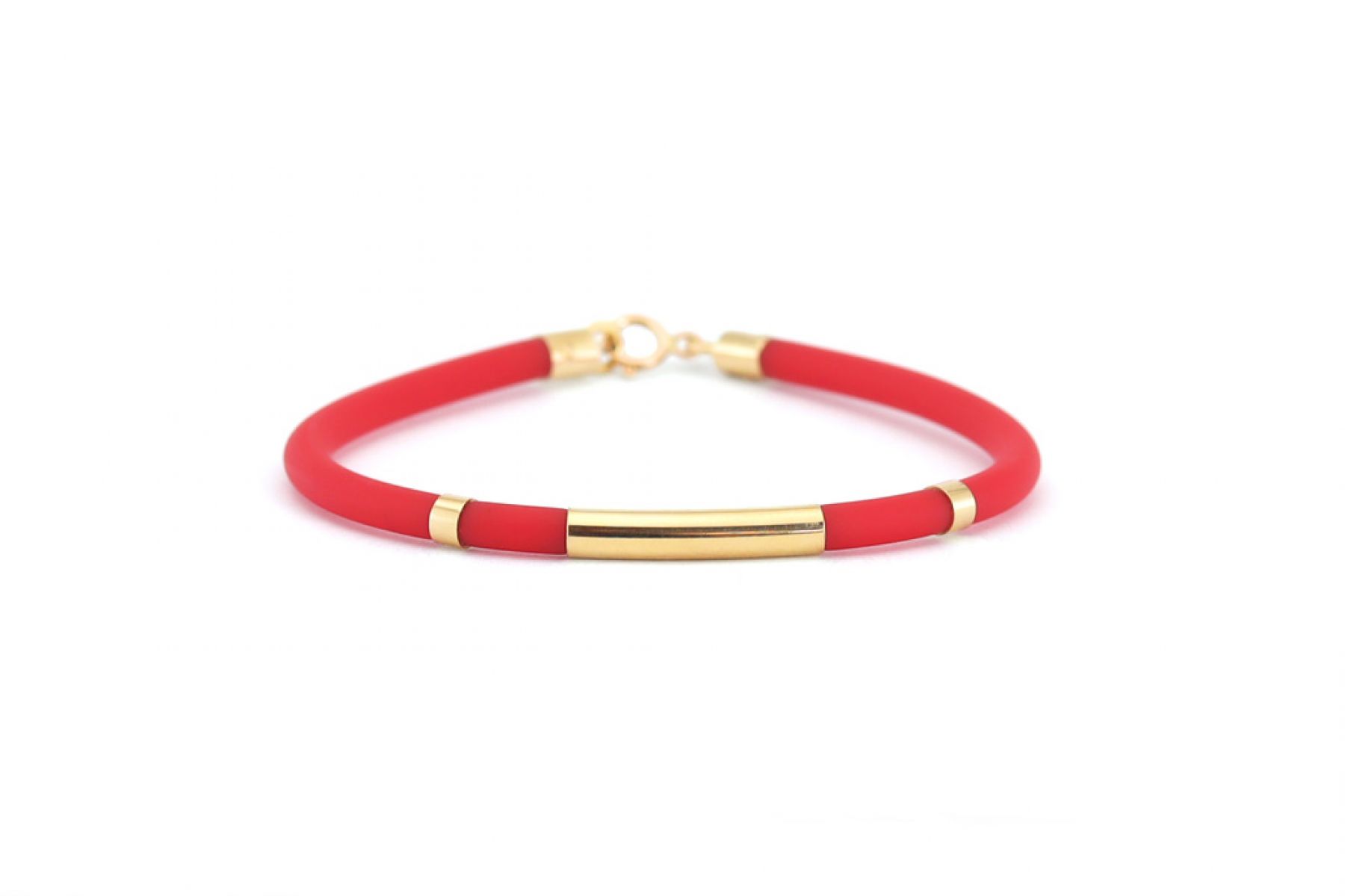 Anyaga: 14K sárga arany és piros kaucsuk