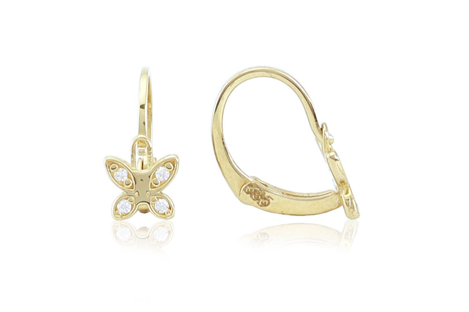 Arany baba és gyermek fülbevaló elölkapcsos pillangó apró fehér kövekkel
