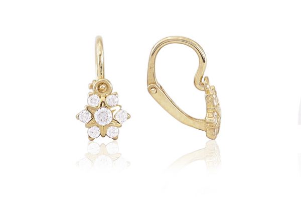 Arany baba fülbevaló elölkapcsos csillagvirág fehér kövekkel