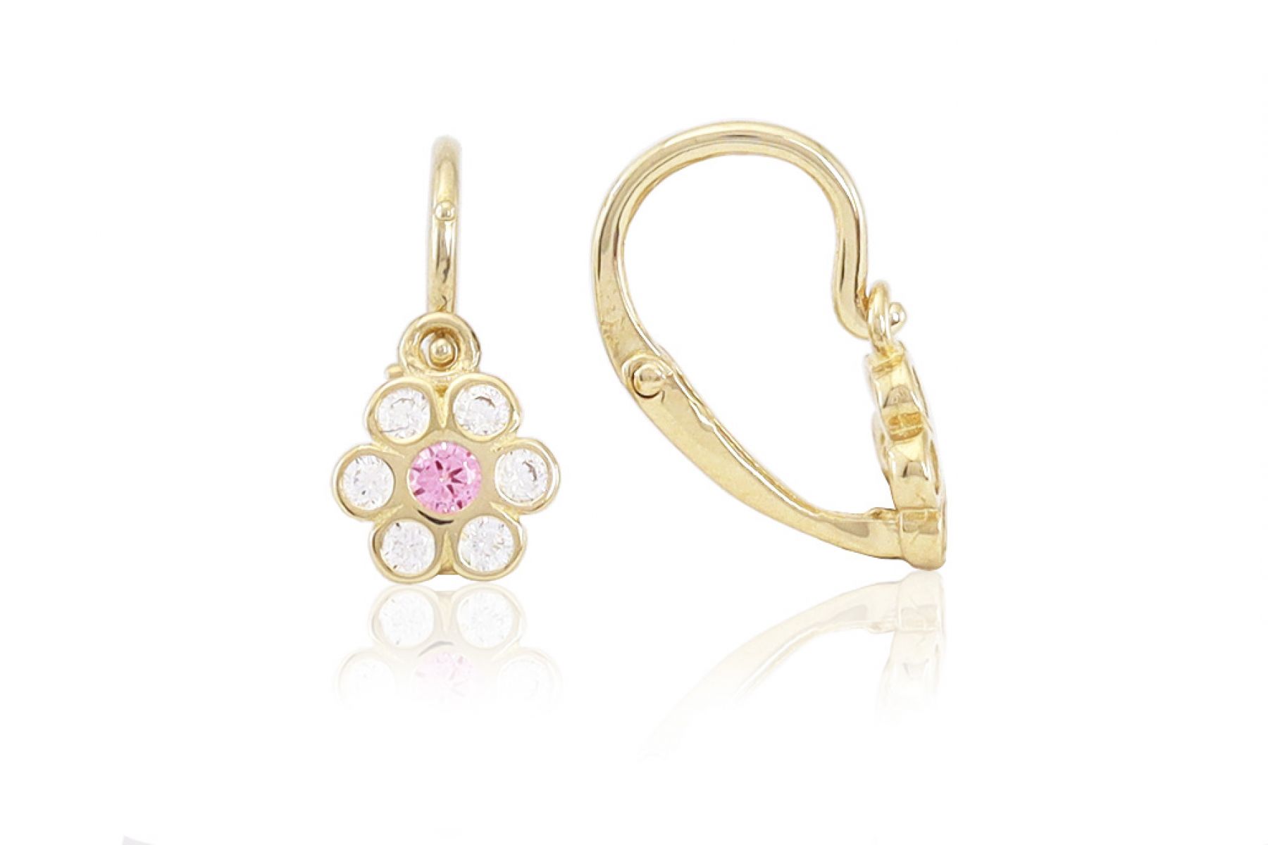 Miért imádják a vásárlók ezt a(z) Arany baba fülbevaló elölkapcsos virág rózsaszín és fehér kövekkel?