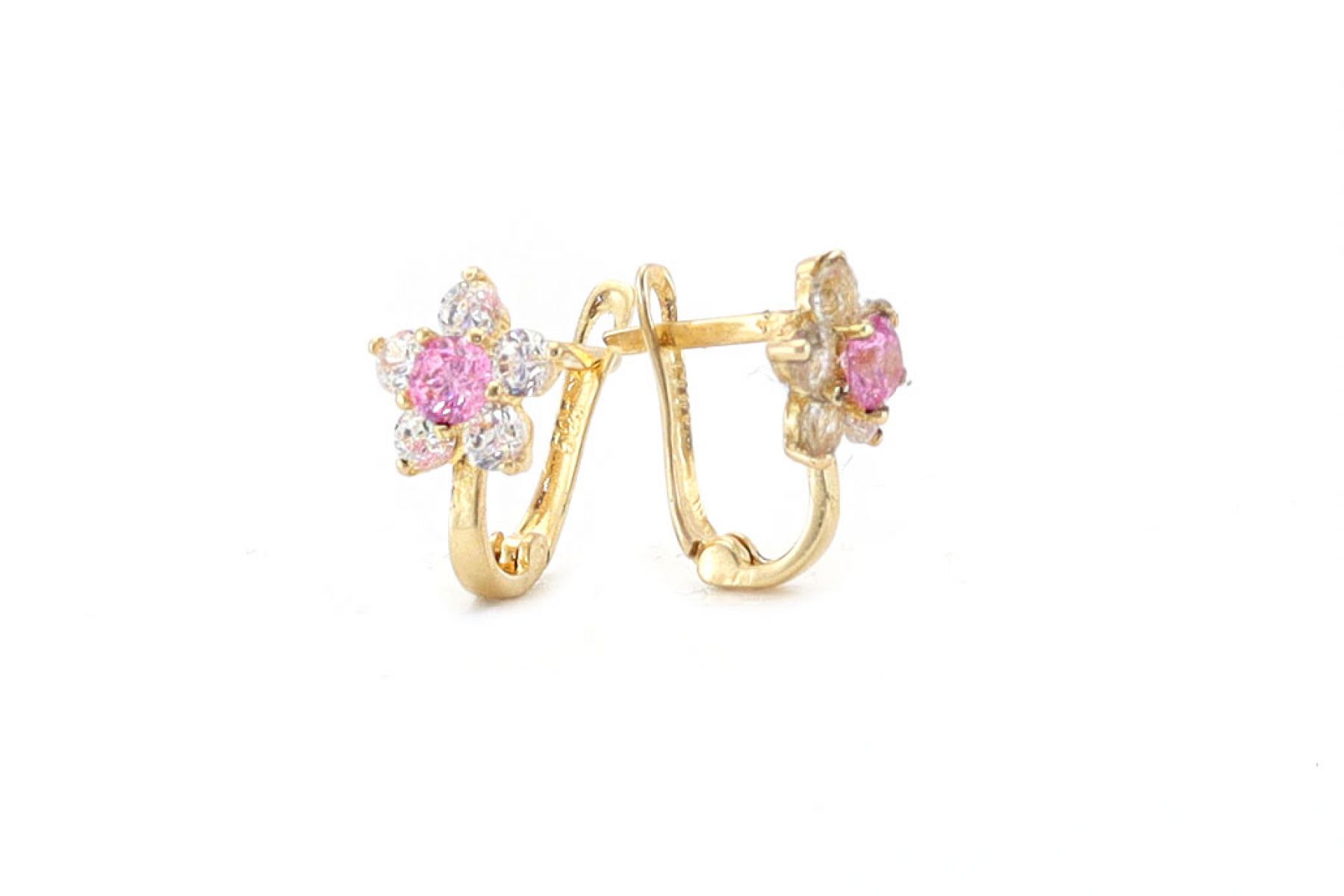 Arany baba fülbevaló franciazáras virág rózsaszín kővel