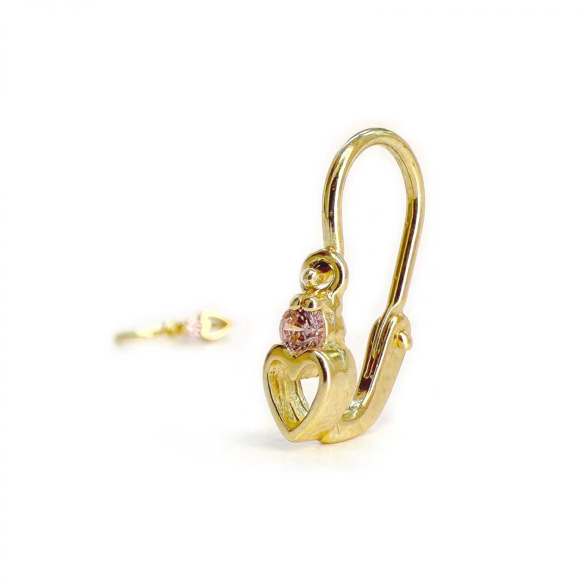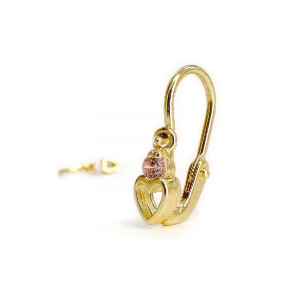 Miért imádják a vásárlók ezt a(z) Arany baba fülbevaló rózsaszín kővel - alul áttört szív forma, 14K előlkapcsos zár?