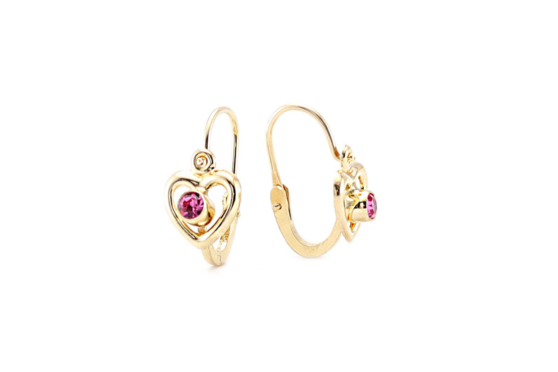 Ez az egyik legaranyosabb sárgaarany gyermek fülbevalónk! Az apró rózsaszín kövecskék vidáman szikráznak a szívecskék közepén, bájos hatást kölcsönözve viselőjének.