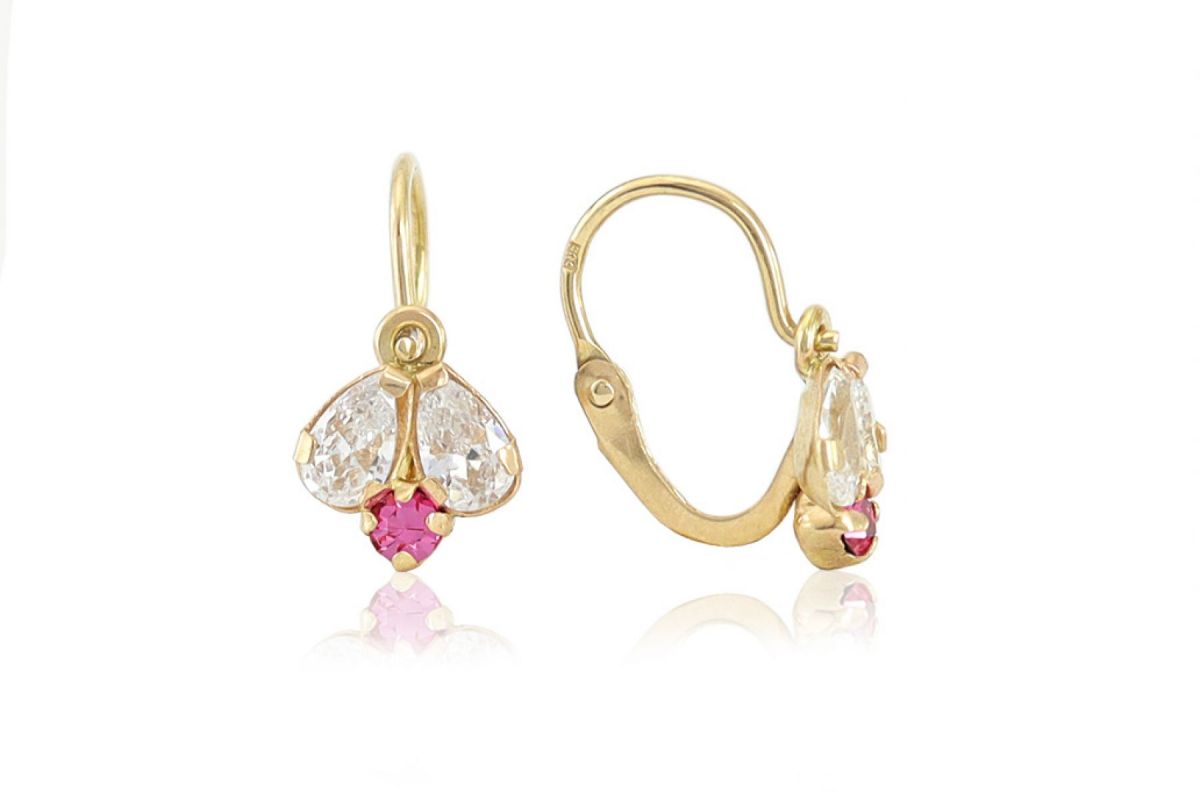 Arany gyermek fülbevaló elölkapcsos méhecske fehér és pink kővel