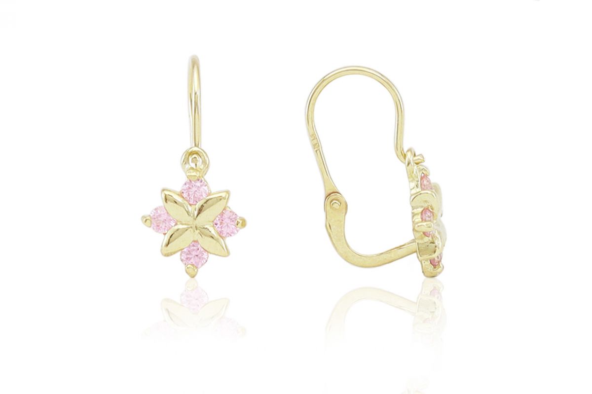 Miért imádják a vásárlók ezt a(z) Arany gyermek fülbevaló elölkapcsos négy foglalt rózsaszín kővel?