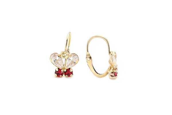Meg vagyunk győződve arról, hogy nincsen a Föld kerekén olyan kislány, akinek ne dobogtatná meg a szívét ez a 14 karátos aranyból készült, fehér-piros cirkónia kövekkel díszitett pillangós fülbevaló.