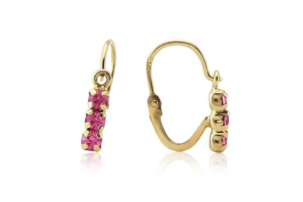 Arany gyermek fülbevaló elölkapcsos rózsaszín kővel