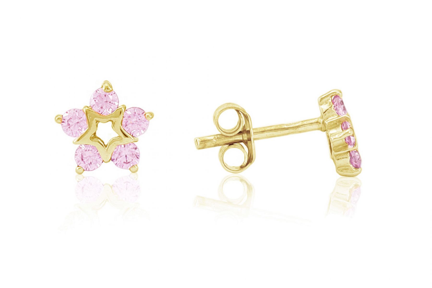 Amennyire aprócska, annyira szép és elegáns ez a szikrázó rózsaszín cirkónia kővel díszített arany csillagvirágos fülbevaló.