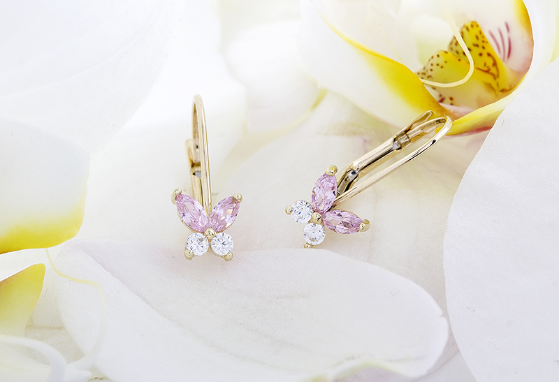 Arany gyermekfülbevaló rózsaszín-fehér kővel x.-a140.4.10s-r