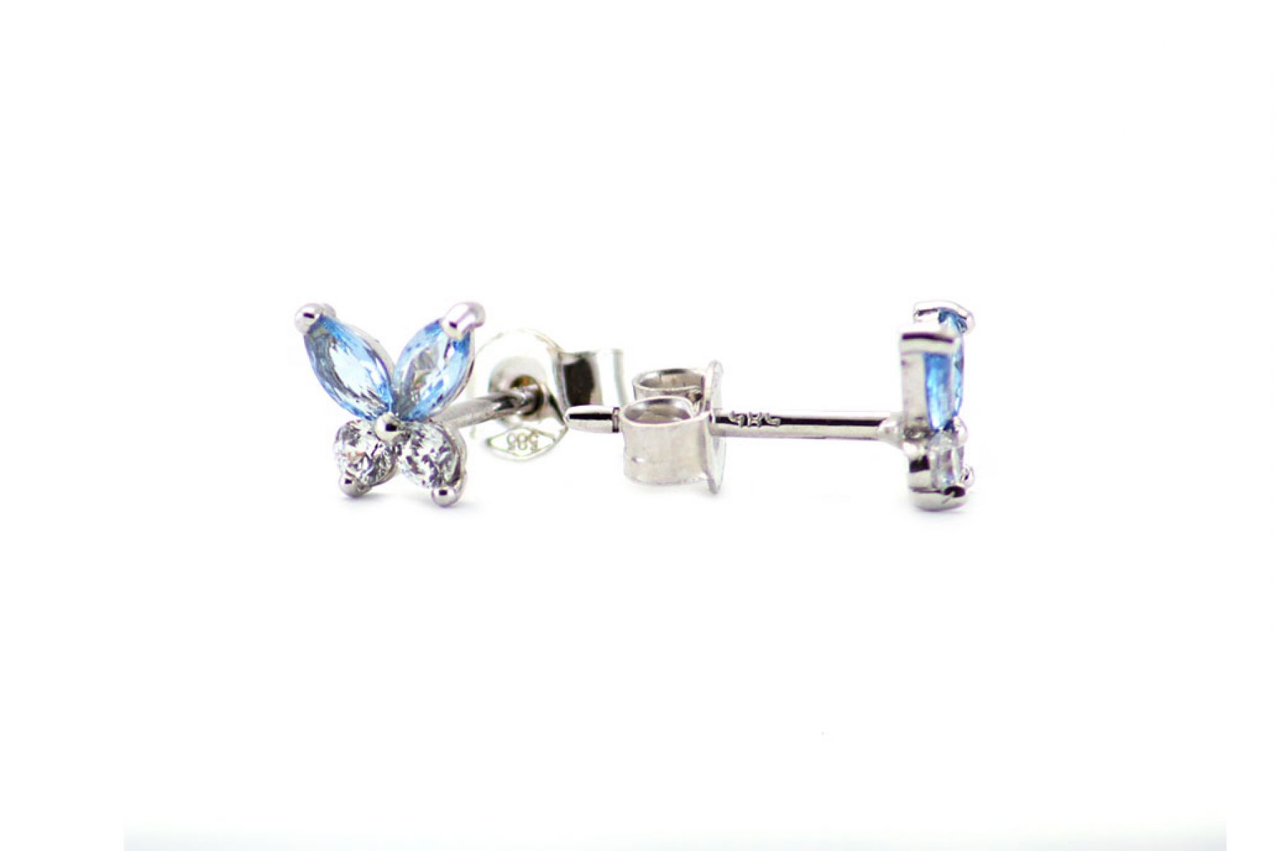 Meg vagyunk győződve arról, hogy nincsen a Föld kerekén olyan kislány, akinek ne dobogtatná meg a szívét ez a 14 karátos fehéraranyból készült, kék és fehér cirkónia kövekkel díszitett pillangós fülbevaló.