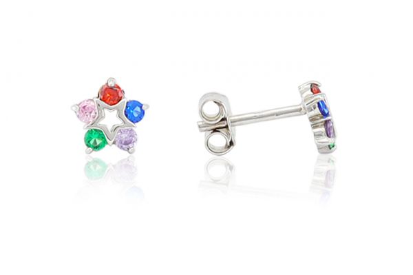 Amennyire aprócska, annyira szép és elegáns ez a szikrázó színes kövekkel díszített fehér arany csillagvirágos fülbevaló.