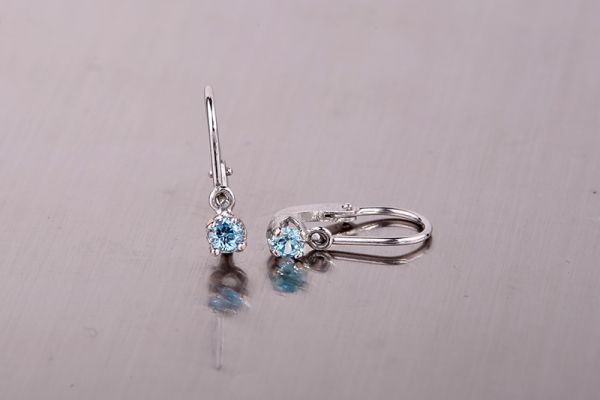 Világoskék egyköves fehérarany baba fülbevaló. Elölkapcsos kivitel, ami biztonságos záródást tesz lehetővé.