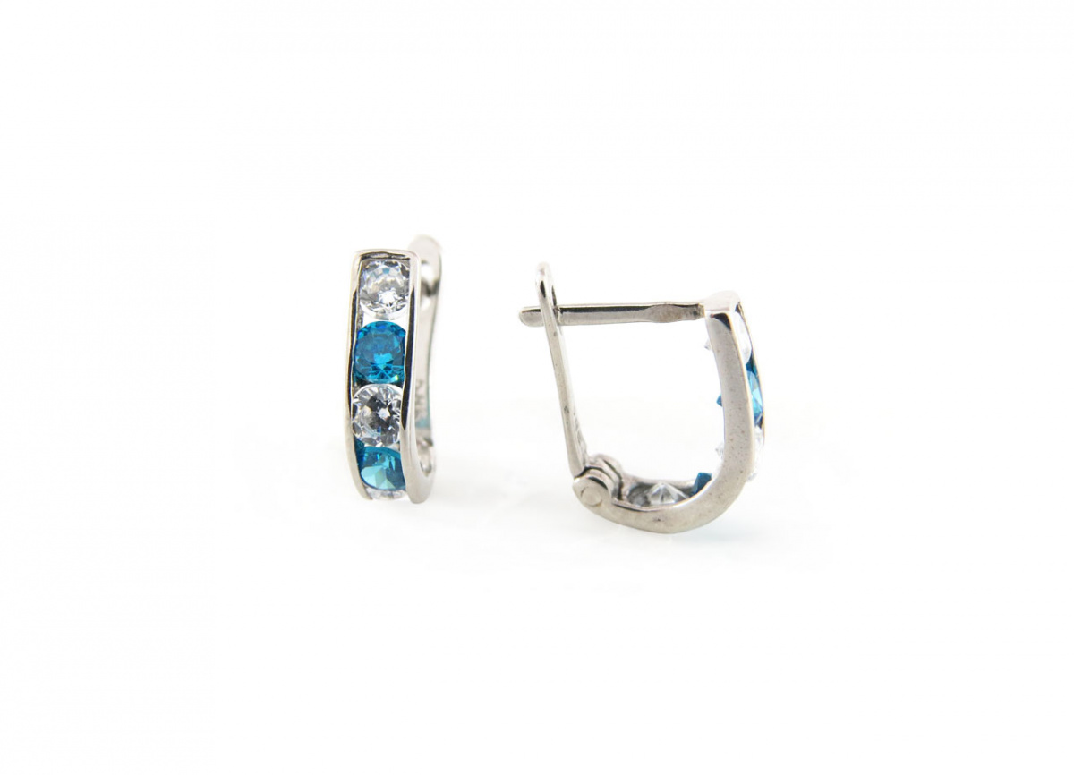 Kék-fehér köves fehérarany baba és gyermek fülbevaló