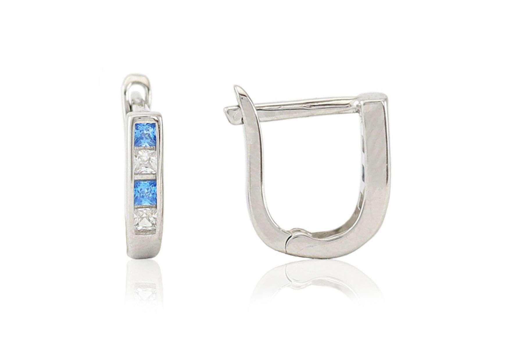 Ez a kis keskeny kialakítású világoskék és fehér kövekkel kirakott franciakapcsos ezüst fülbevaló igazán imádnivaló! Bátran ajánljuk hát a legaranyosabb, legmosolygósabb, legcukibb kislányoknak! :)