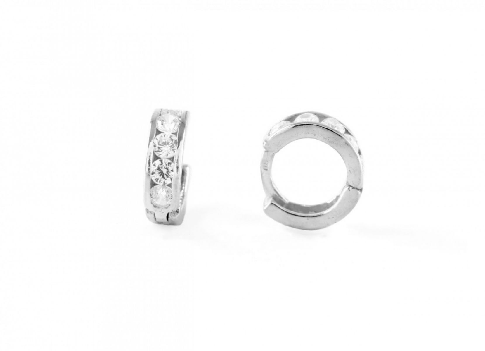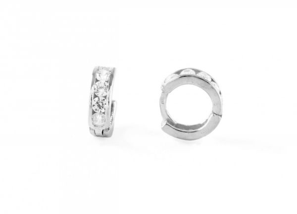 Ezüst baba fülbevaló bepattintós széles karika fehér kövekkel ródiumbevonatos