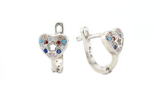 Ezüst baba fülbevaló franciakapcsos csillagos szívecske