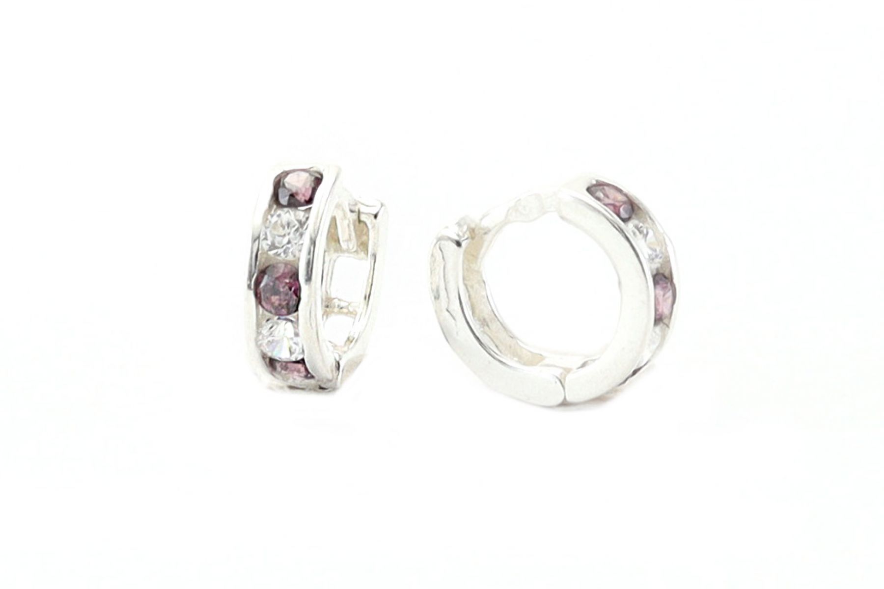 Ezüst baba fülbevaló karika rodolit-fehér kövekkel 6mm