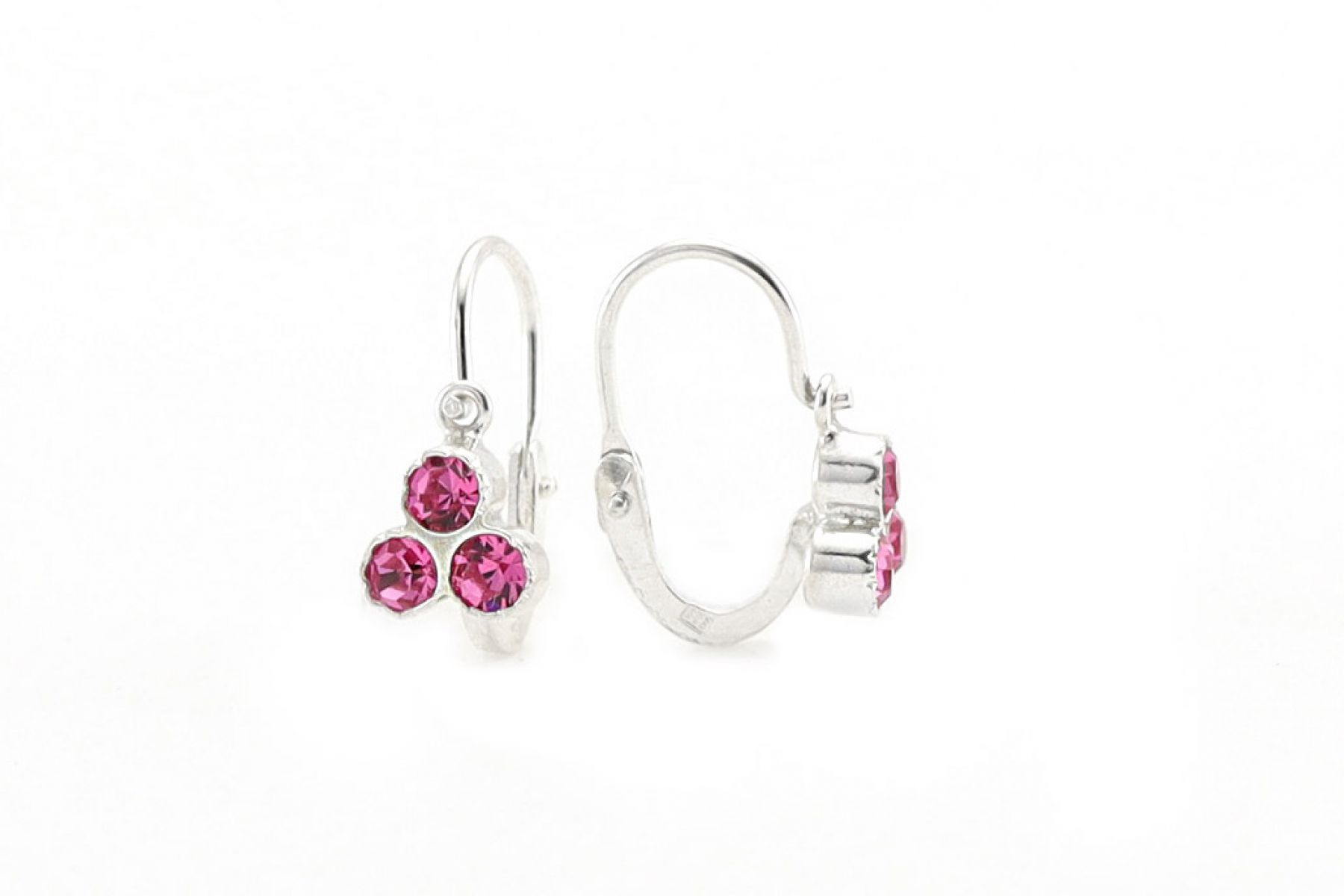 Gyönyörűen szikráznak a rájuk eső fényben ezek a pink cirkónia kövekkel díszített ezüst gyermek fülbevalók.