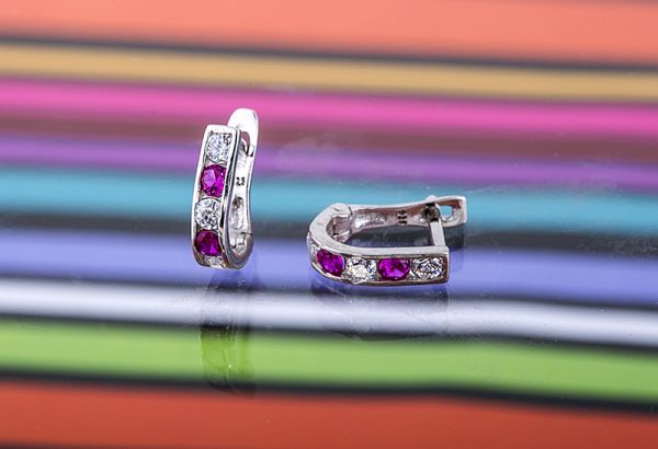 Ezüst baba és gyermek fülbevaló franciakapcsos pink és fehér kövekkel ródiumbevonatos