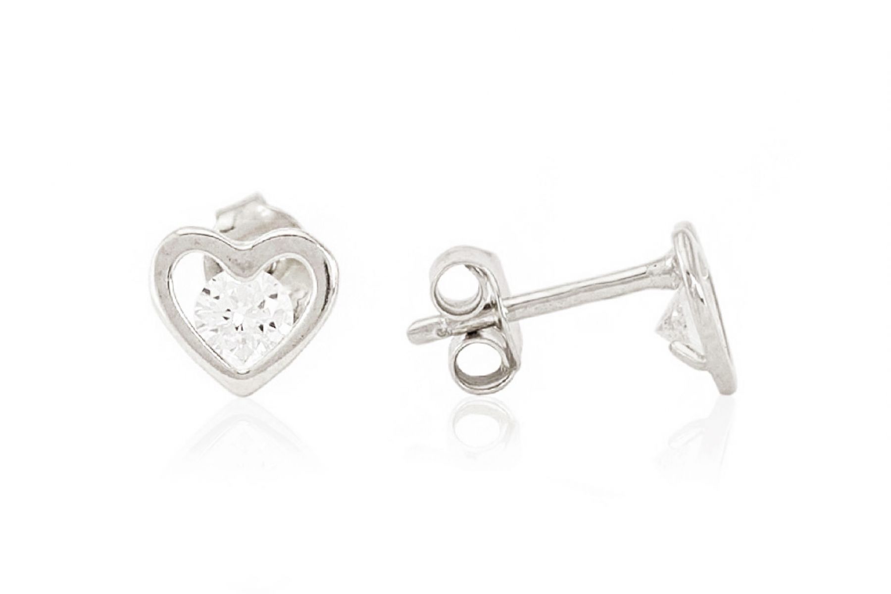 Egyszerre aranyos és elegáns ez az aprócska, áttört mintázatú, picike fehér cirkónia kövekkel díszített ezüst szív fülbevaló.