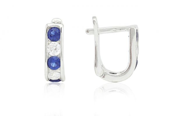 Ezüst fülbevaló franciakapcsos sötétkék és fehér kövekkel
