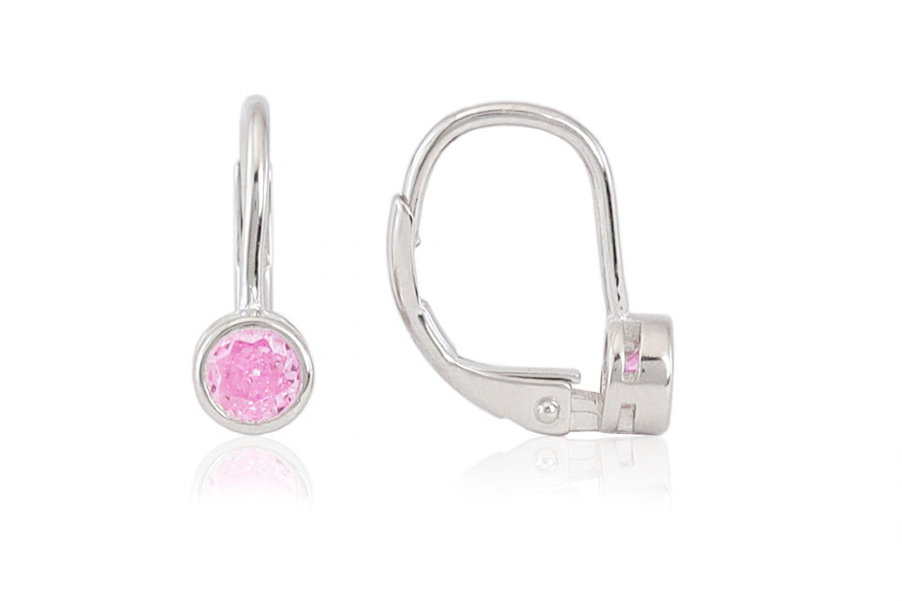 Egyik legszebb ezüst gyermek fülbevalónk ez a rózsaszín kővel díszített darab.